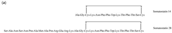 - Patel, Y.C. Somatostatin and its receptor family. Front. Neuroendocrinol. 1999, 20, 157–198. [Google Scholar] [CrossRef]