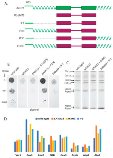 - Kuzmenko, A.; Derbikova, K.; Salvatori, R.; Tankov, S.; Atkinson, G.C.; Tenson, T.; Ott, M.; Kamenski, P.; Hauryliuk, V. Aim-less translation: Loss of saccharomyces cerevisiae mitochondrial translation initiation factor mIF3/Aim23 leads to unbalanced protein synthesis. Sci. Rep. 2016, 6, 18749. [Google Scholar] [CrossRef] [PubMed]