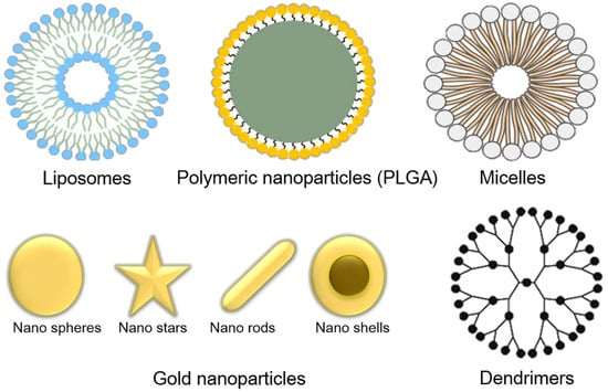 The various bioactive nanoparticles enable them to be the primary option for immunotherapy (Figure 4). The application of these bioactive nanoparticles in cancer therapy has been studied for decades. Among a number of bioactive nanoparticle systems for cancer immunotherapy, polymeric nanoparticles are the most common. PLGA is one of the most studied FDA-approved polymeric carriers for cancer immunotherapy due to its nontoxicity and biodegradability [59,60,61]. In addition to PLGA lipids, PEG (polyethylene glycol) is also commonly used for the synthesis of nanocarrier systems as vehicles for immunotherapy. Liposomes, micelles, dendrimers, inorganic nanoparticles such as gold nanoparticles, iron oxide nanoparticles, carbon nanoparticles, and quantum dots are also commonly used as carriers due their specific targeting, nontoxicity, and biodegradability [62,63,64]. All of these nanoparticles can be utilized to track cancer and treat tumors with minimal off targeting. The final goal of bioactive nanoparticles is to successfully deliver antigens, adjuvants or other immunotherapeutic agents to the desired target sites, such as lymph nodes or other intracellular locations, for the activation of the immune response.
