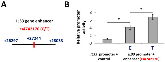 2.1. A Putative Enhancer Including rs4742170 Stimulates IL33 Promoter Activity