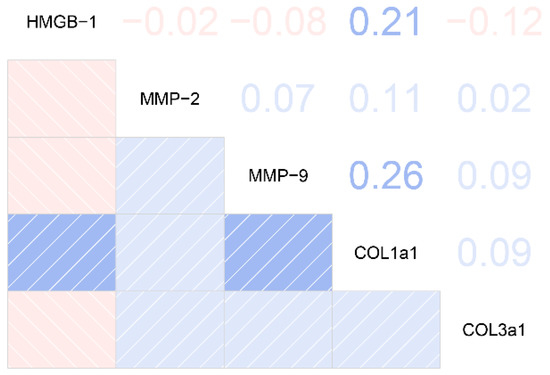 Plasma HMGB-1 concentrations were measured using the HMGB-1 ELISA Kit II (Shino Test Corporation, Tokyo, Japan) according to the manufacturer’s protocols. Plasma MMP-2 and MMP-9 concentrations were detected by ELISA commercially available kits purchased from R&D Systems Inc. (Minneapolis, MN, USA), and plasma COL1A1 and COL3A1 concentrations were detected by assay ELISA kits purchased from Uscn Life Science Inc. (Wuhan, China). Each sample was run in duplicate and the mean concentration was determined.