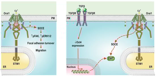 - Zhang, S.; Miao, Y.; Zheng, X.; Gong, Y.; Zhang, J.; Zou, F.; Cai, C. STIM1 and STIM2 differently regulate endogenous Ca2+ entry and promote TGF-beta-induced EMT in breast cancer cells. Biochem. Biophys. Res. Commun. 2017, 488, 74–80. [Google Scholar] [CrossRef] [PubMed]