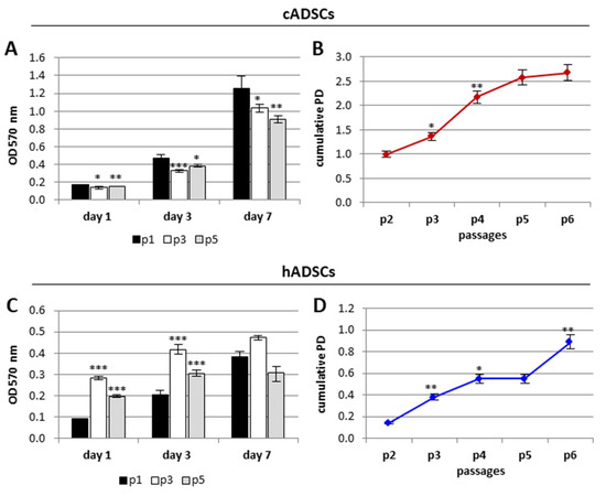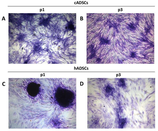 - Yaneselli, K.M.; Kuhl, C.P.; Terraciano, P.B.; de Oliveira, F.S.; Pizzato, S.B.; Pazza, K.; Magrisso, A.B.; Torman, V.; Rial, A.; Moreno, M.; et al. Comparison of the characteristics of canine adipose tissue-derived mesenchymal stem cells extracted from different sites and at different passage numbers. J. Vet. Sci. 2018, 19, 13–20. [Google Scholar] [CrossRef] [PubMed]