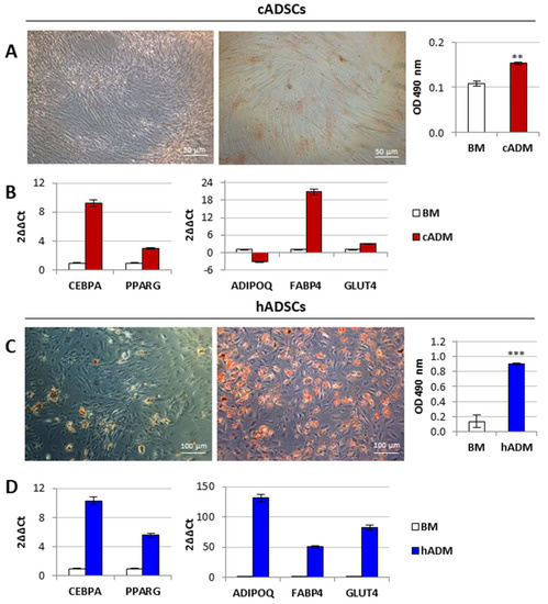 4.7. In Vitro Differentiation of cADSCs and hADSCs