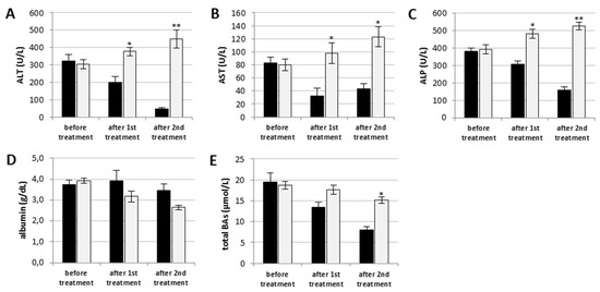 - Luo, L.; Schomaker, S.; Houle, C.; Aubrecht, J.; Colangelo, J.L. Evaluation of serum bile acid profiles as biomarkers of liver injury in rodents. Toxicol. Sci. 2014, 137, 12–25. [Google Scholar] [CrossRef] [PubMed]