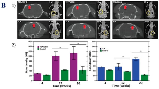 | SrFO-loaded biohybrid scaffolds | Wistar Rats | Skull | Increased new bone formation | [16] | ||