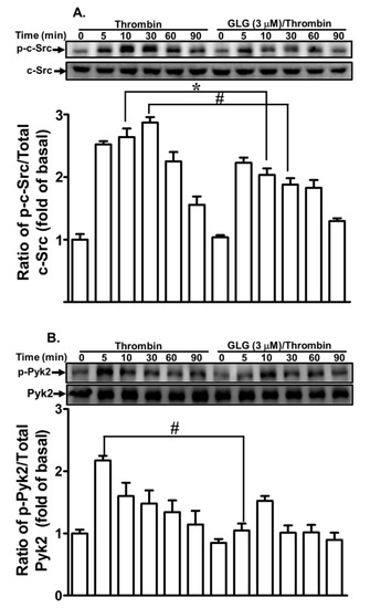 2.2. Galangin Attenuates Thrombin-Induced Non-Receptor Tyrosine Kinase (nRTK) Activity