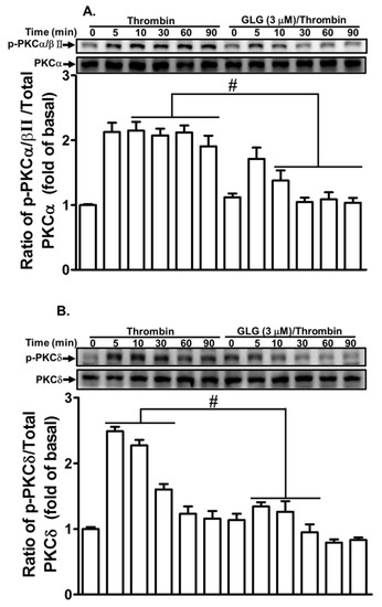 2.3. Galangin Reduces Thrombin-Stimulated Phosphorylation of PKCs