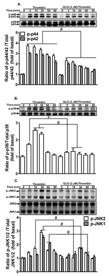 2.5. Galangin Inhibits Thrombin-Stimulated MAPKs Activity