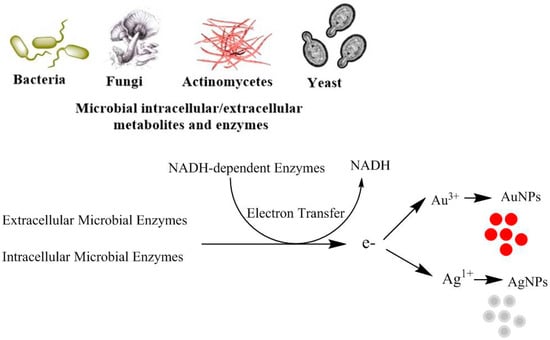 Ovais, M.; Khalil, A.T.; Ayaz, M.; Ahmad, I.; Nethi, S.K.; Mukherjee, S. Biosynthesis of Metal Nanoparticles via Microbial Enzymes: A Mechanistic Approach. Int. J. Mol. Sci. 2018, 19, 4100. https://doi.org/10.3390/ijms19124100