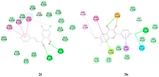 2.3.1. Molecular Docking of Compounds 2f and 3b into AChE Active Site