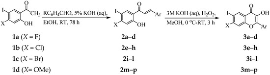 3.4. Typical Procedure for the Synthesis of the 7-substituted 2-aryl-3-hydroxy-6-iodochromen-4-ones 3a–p