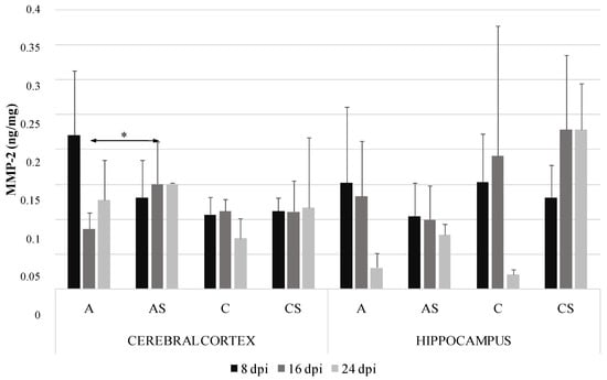 Chicago/Turabian StyleŁanocha-Arendarczyk, Natalia, Irena Baranowska-Bosiacka, Izabela Gutowska, Agnieszka Kolasa-Wołosiuk, Karolina Kot, Aleksandra Łanocha, Emilia Metryka, Barbara Wiszniewska, Dariusz Chlubek, and Danuta Kosik-Bogacka. 2018. "The Activity of Matrix Metalloproteinases (MMP-2, MMP-9) and Their Tissue Inhibitors (TIMP-1, TIMP-3) in the Cerebral Cortex and Hippocampus in Experimental Acanthamoebiasis" International Journal of Molecular Sciences 19, no. 12: 4128. https://doi.org/10.3390/ijms19124128