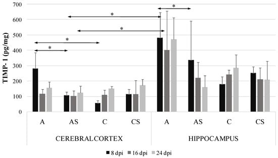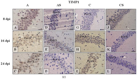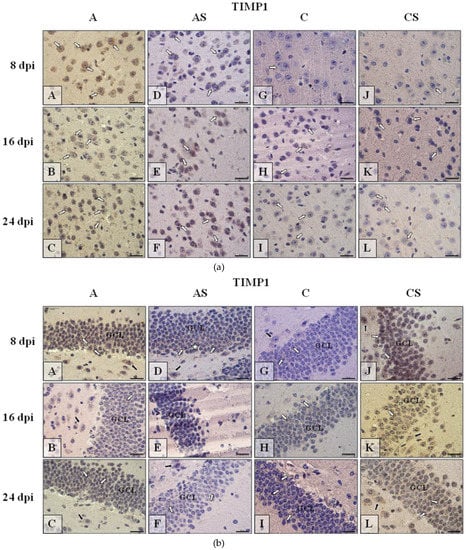 2.3. TIMP-1 in the Cerebral Cortex and Hippocampus during Acanthamoebiasis