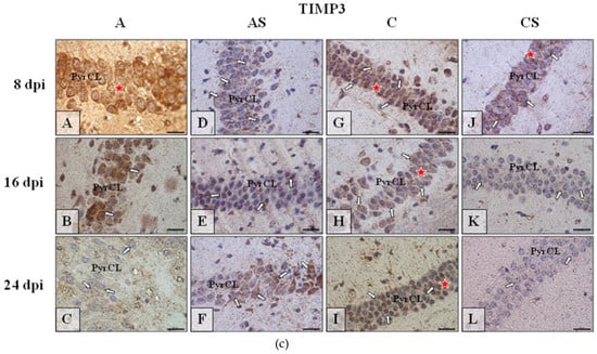 2.4. TIMP-3 in the Cerebral Cortex and Hippocampus during Acanthamoebiasis
