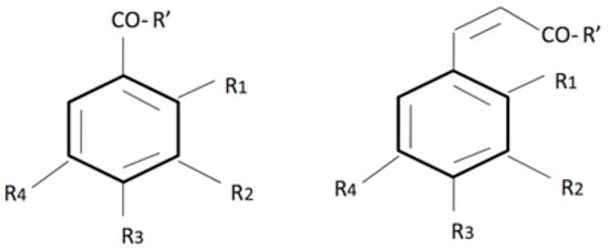 Molecular structure of benzoic and cinnamic acid derivatives.