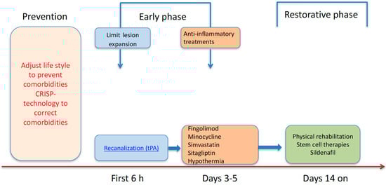 Recently developed genome-editing technologies opened new avenues for stroke prevention by altering genes in adult organisms. Thus, CRISP-Cas9 system, that allows base editing in the genomic DNA, and thus, permanent alteration of genes in adult organisms, can be used in the prevention and treatment of atherosclerosis by correction of atherogenic gene mutations, or insertion of protective genes [,].