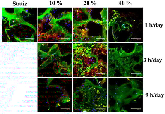 - Shelton, J.C.; Bader, D.L.; Lee, D.A. Mechanical conditioning influences the metabolic response of cell-seeded constructs. Cells Tissues Organs 2003, 175, 140–150. [Google Scholar] [CrossRef] [PubMed]