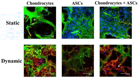 - Hubka, K.M.; Dahlin, R.L.; Meretoja, V.V.; Kasper, F.K.; Mikos, A.G. Enhancing chondrogenic phenotype for cartilage tissue engineering: Monoculture and coculture of articular chondrocytes and mesenchymal stem cells. Tissue Eng. Part B 2014, 20, 641–654. [Google Scholar] [CrossRef] [PubMed]