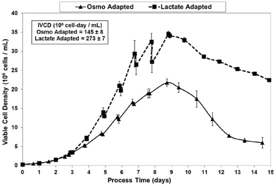 2.2. Growth Performance of Adapted Cells in Fed-Batch Bioreactor Cultures