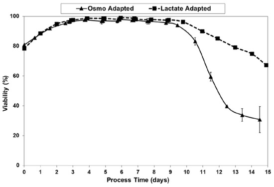 Viabilities for fed-batch bioreactor cultures.