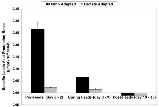 Specific lactic acid production rates for fed-batch bioreactor cultures.