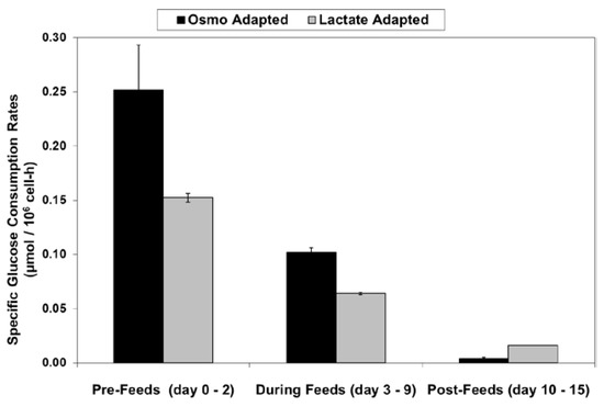 Specific glucose consumption rates for fed-batch bioreactor cultures.