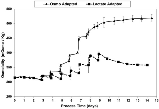 Osmolality levels for fed-batch bioreactor cultures.