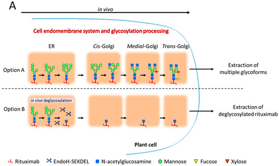 - Strasser, R.; Stadlmann, J.; Schähs, M.; Stiegler, G.; Quendler, H.; Mach, L.; Glössl, J.; Weterings, K.; Pabst, M.; Steinkellner, H. Generation of glyco-engineered Nicotiana benthamiana for the production of monoclonal antibodies with a homogeneous human-like N-glycan structure. Plant Biotechnol. J. 2008, 6, 392–402. [Google Scholar] [CrossRef] [PubMed]