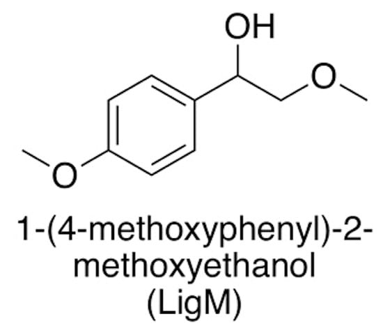 Chemical structure of the 1-(4-methoxyphenyl)-2-methoxyethanol (LigOH) (β-O-4 linkage) chosen as the model of lignin to investigate the interaction between lignin and PILs at the molecular level.