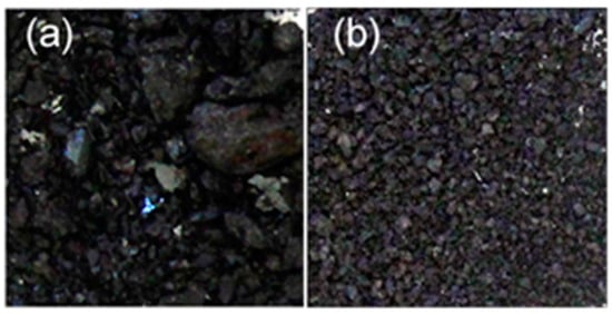 Images (10×) of lignin showing the lignin extracted from CS using the [Pyrr][Ac]-PILs: (a) the solids recovered after the PIL removal, and (b) solids after passing the solids form (a) through a water wash step.