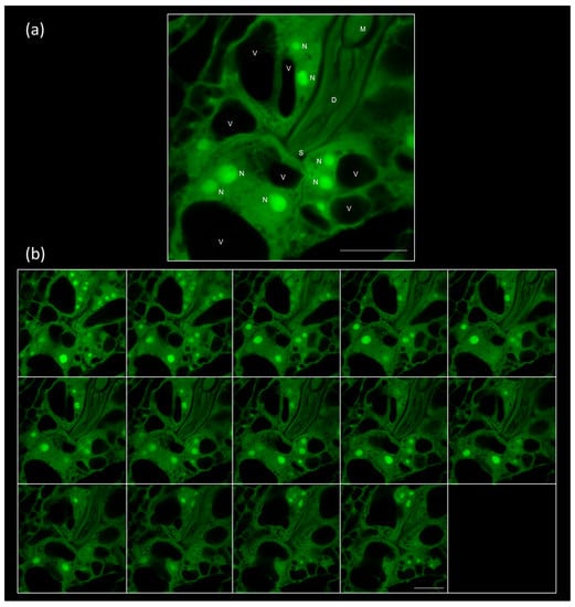 - Ohtsu, M.; Sato, Y.; Kurihara, D.; Suzaki, T.; Kawaguchi, M.; Maruyama, D.; Higashiyama, T. Spatiotemporal deep imaging of syncytium induced by the soybean cyst nematode Heterodera glycines. Protoplasma 2017, 1–9. [Google Scholar] [CrossRef] [PubMed]