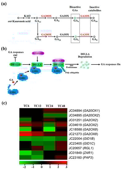 2.4. DEGs Involved in Gibberellin Biosynthesis, Metabolism and Signaling