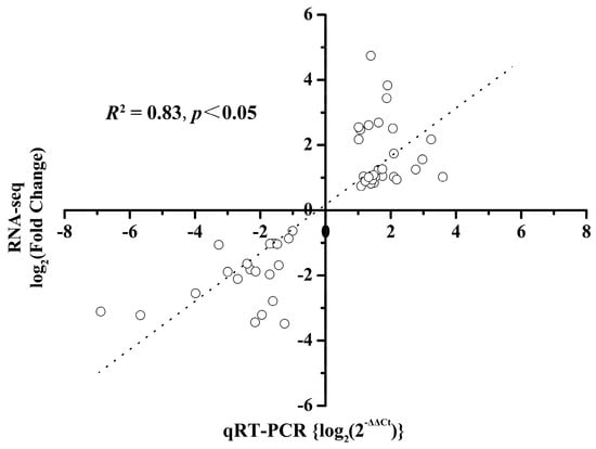 - Trapnell, C.; Roberts, A.; Goff, L.; Pertea, G.; Kim, D.; Kelley, D.R.; Pimentel, H.; Salzberg, S.L.; Rinn, J.L.; Pachter, L. Differential gene and transcript expression analysis of RNA-seq experiments with TopHat and Cufflinks. Nat. Protoc. 2012, 7, 562–578. [Google Scholar] [CrossRef]