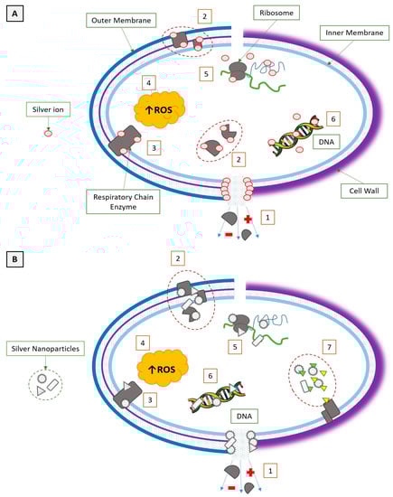 Kędziora, A.; Speruda, M.; Krzyżewska, E.; Rybka, J.; Łukowiak, A.; Bugla-Płoskońska, G. Similarities and Differences between Silver Ions and Silver in Nanoforms as Antibacterial Agents. Int. J. Mol. Sci. 2018, 19, 444. https://doi.org/10.3390/ijms19020444