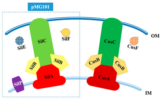 - Asiani, K.R.; Williams, H.; Bird, L.; Jenner, M.; Searle, M.S.; Hobman, J.L.; Scott, D.J.; Soultanas, P. SilE is an intrinsically disordered periplasmic “molecular sponge” involved in bacterial silver resistance. Mol. Microbiol. 2016, 101, 731–742. [Google Scholar] [CrossRef] [PubMed]