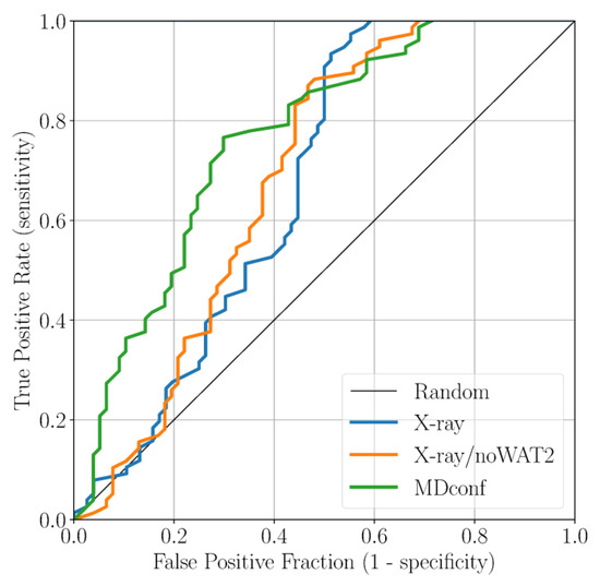 ROC curve for the docking results based on the three receptor structures studied.