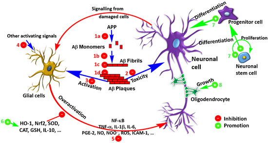 - Li, C.; Zhao, R.; Gao, K.; Wei, Z.; Yin, M.Y.; Lau, L.T.; Chui, D.; Yu, A.C. Astrocytes: Implications for neuroinflammatory pathogenesis of Alzheimer’s disease. Curr. Alzheimer Res. 2011, 8, 67–80. [Google Scholar] [CrossRef] [PubMed]