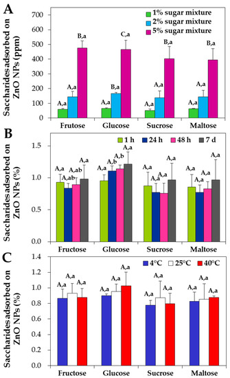4.4. Quantitative Analysis on ZnO NP Interaction with Saccharides