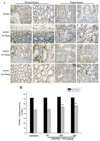 2.2. TPS-Induced Apoptosis and Inhibited Cell Cycle Progression in CAC Mice