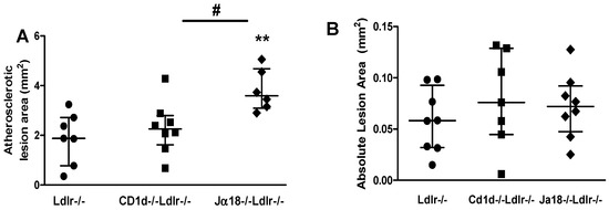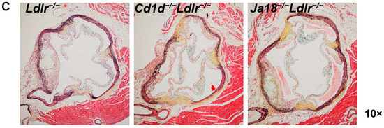 - Rogers, L.; Burchat, S.; Gage, J.; Hasu, M.; Thabet, M.; Willcox, L.; Ramsamy, T.A.; Whitman, S.C. Deficiency of invariant Valpha 14 natural killer T cells decreases atherosclerosis in LDL receptor null mice. Cardiovasc. Res. 2008, 78, 167–174. [Google Scholar] [CrossRef] [PubMed]