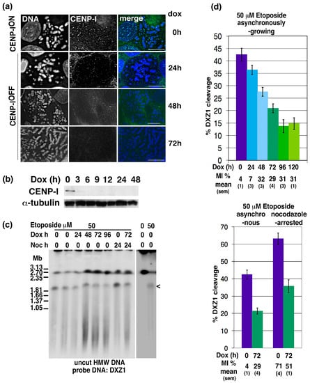 - Nishihashi, A.; Haraguchi, T.; Hiraoka, Y.; Ikemura, T.; Regnier, V.; Dodson, H.; Earnshaw, W.C.; Fukagawa, T. CENP-I is essential for centromere function in vertebrate cells. Dev. Cell 2002, 2, 463–476. [Google Scholar] [CrossRef]