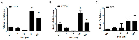 2.1. Prostaglandin D2 Receptor 2 (DP2) Antagonist Regulates Dihydrotestosterone (DHT)-Induced Prostaglandin D2 (PGD2) Pathway