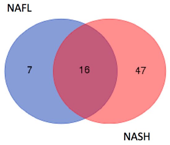 Venn diagram of the overlap of identified protein fragments in NASH and NAFL groups.