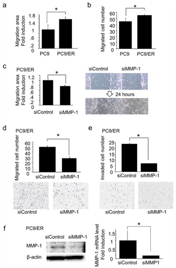 Chicago/Turabian StyleSaito, Ryoko, Yasuhiro Miki, Naoya Ishida, Chihiro Inoue, Masayuki Kobayashi, Shuko Hata, Hisafumi Yamada-Okabe, Yoshinori Okada, and Hironobu Sasano. 2018. "The Significance of MMP-1 in EGFR-TKI–Resistant Lung Adenocarcinoma: Potential for Therapeutic Targeting" International Journal of Molecular Sciences 19, no. 2: 609. https://doi.org/10.3390/ijms19020609