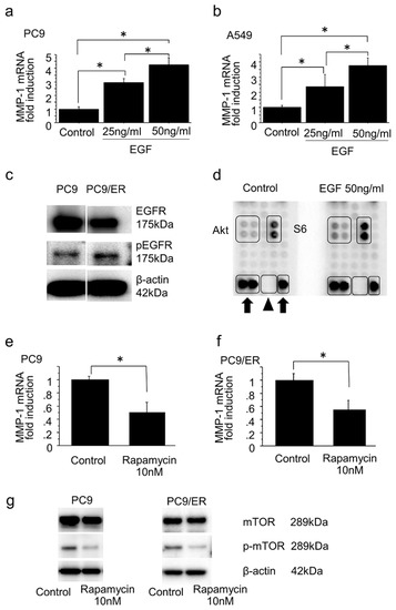 2.4. Mammalian Target of Rapamycin Pathway in the Induction of MMP-1 Expression in Lung Adenocarcinoma