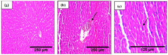 Interestingly, the present data showed that H2O2 induces histopathological changes in the liver, brain and kidney that include dilatation in the central vein, binucleation and inflammation in the liver, congestion in the kidney, and congestion, and hemorrhage in the brain tissue. In the liver, the histopathological changed accompanied by elevation of liver enzymes. The brain is known as the most sensitive organ to oxidative stress because of its high oxygen consumption and low antioxidant content [40]. The results are in agreement with a recent study reporting that oxidative stress causes congestion and cerebral hemorrhage [41].