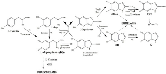 - Hearing, V.J.; Tsukamoto, K. Enzymatic control of pigmentation in mammals. FASEB J. 1991, 5, 2902–2909. [Google Scholar] [CrossRef] [PubMed]