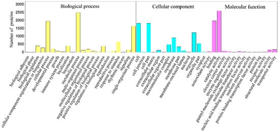 Functional annotations of the proteins were conducted using the Blast2GO program against the non-redundant protein database (NR; NCBI: http://www.geneontology.org/). The Cluster of Orthologous Groups of proteins (COG) is a database of direct homologous classification of proteins and was used to predict the possible function of the identified proteins. KEGG (Available online: http://www.genome.jp/kegg/) is a fundamental public database related to biochemical pathways []. It was utilized to determine the main biochemical metabolic pathways and signal transduction pathways associated with the identified proteins.
