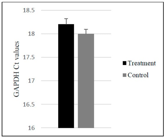 Glyceraldehyde 3-phosphate dehydrogenase (GAPDH) Ct values were not significantly different between treatment and controls.